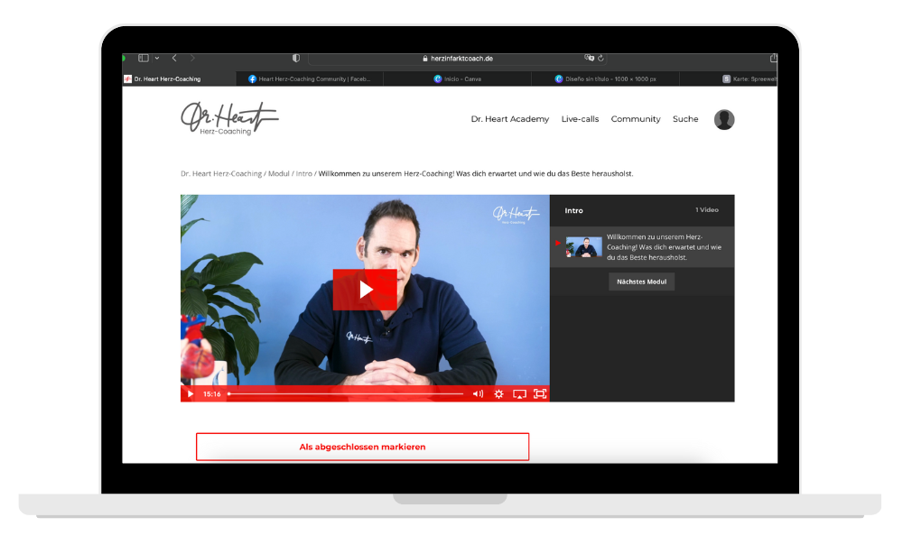 Tiefgehendes Onboarding-Coaching, maßgeschneiderter Herz-Coaching- Plan, engmaschige Follow-up-Coachings und kontinuierliche Begleitung.